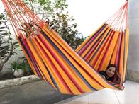 | Mykt, lett og stilrent hengekøyetekstil til utendørs aktiviteter. En flott hengekøye til outdoor living. Hengekøyematerialet Pro Textil er fremstilt til dem som gjerne vil la hengekøyen henge ute hele sommeren. Denne typen stoffhengekøye har mange av de samme egenskapene som de alminnelige bomullshengekøyene av stoff. * Hengekøyetekstil som både er mykt og kan klare sol og regn. * Vandet trekker ikke inn i Pro tekstilen og tørker raskt. * Farger som er vannfaste, fargeekte og smitter ikke av. * Tekstil som er sterkt og lett. * Tekstil som er spesialprodusert til stoffhengekøyer som brukes mye ute. * Vask hengekøyen som vanlig bomull. * Eller bruk mild såpe ved håndvask og tørk etter med en fuktig klut. Moteriktig outdoor hengekøye av stoff og hengestol av stoff med myk komfort. Pro tekstil hengekøye. Les mer om hvordan du kan bruke din hengekøye. |